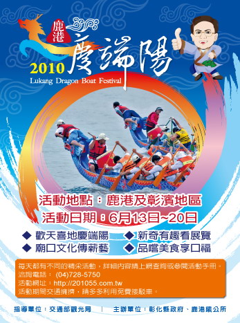 「2010鹿港慶端陽」活動相關資訊,各位鄉親可以上彰化縣政府網站(http://www.201055.com.tw/)或是鹿港鎮公所網站(http://www.lukang.gov.tw/﹞查詢。