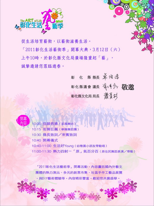 「2011彰化生活藝術季」3月12日開幕,誠摯邀請鄉親『藝』起來