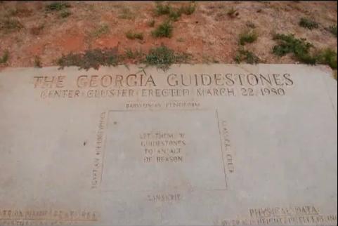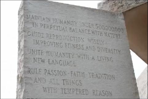 碑, 碑上有刻文, 上面說到, 要努力達成目標, 將未來世界人口