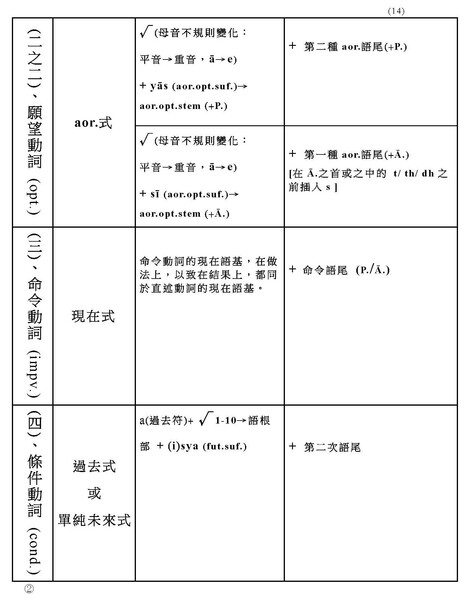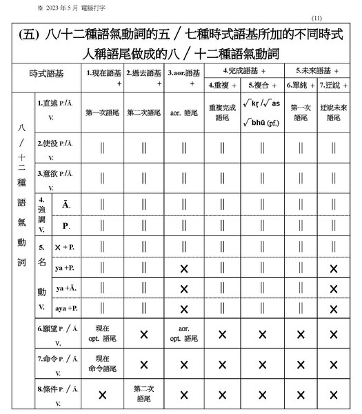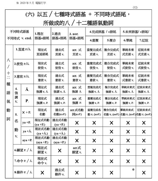 (二)依語氣分,有八/十二種語氣動詞。又,八/十二種語氣v.若再依時式分,則有三類: