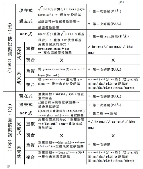 ※ 以上「簡介梵文動詞(1)」、「動詞(四)」梵文文法資料與表格,由如實佛學研究室提供,歡迎參考與學習。