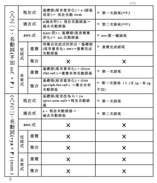 (二之4之1) 强調語基 +P. (有五/七種時式,故强調語基+P.也有五/七種);