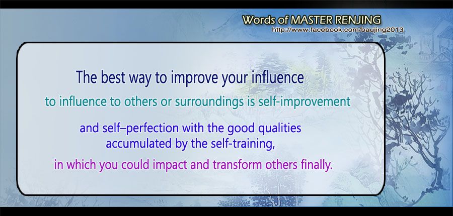 The best way to improve your influence to others or surroundings is self-improvement and self–perfection with the good qualities accumulated by the self-training, in which you could impact and transform others finally.