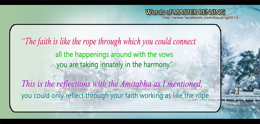 “The faith is like the rope through which you could connect all the happenings around with the vows you are taking innately in the harmony.” This is the reflections with the Amitabha as I mentioned, you could only reflect through your faith working as like the rope.