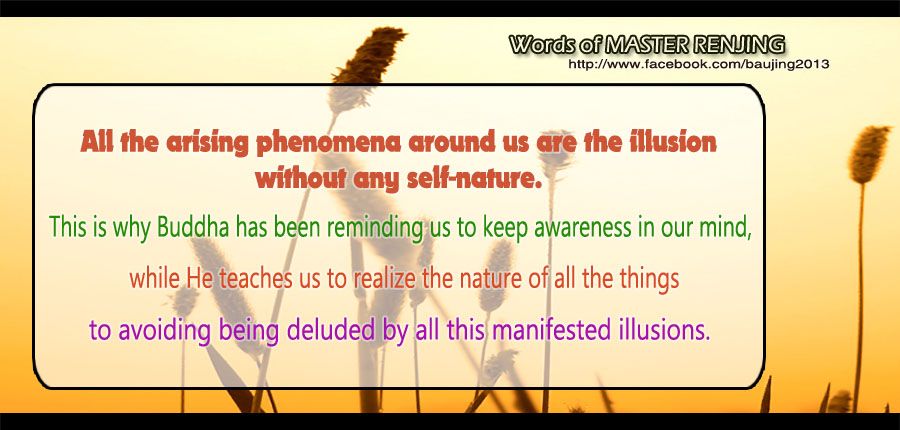All the arising phenomena around us are the illusion without any self-nature. This is why Buddha has been reminding us to keep awareness in our mind, while He teaches us to realize the nature of all the things to avoiding being deluded by all this manifested illusions.
