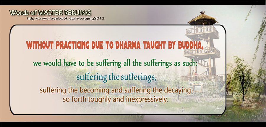 Without practicing due to Dharma taught by Buddha, we would have to be suffering all the sufferings as such: suffering the sufferings, suffering the becoming and suffering the decaying so forth toughly and inexpressively.