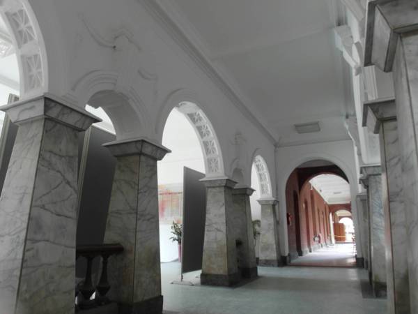 進門映入眼前是白色大廳,半圓拱式窗戶,拱廊,連綿延伸,樸素是它的特色。為了因應台灣潮濕氣候,建築抬升ㄧ尺。