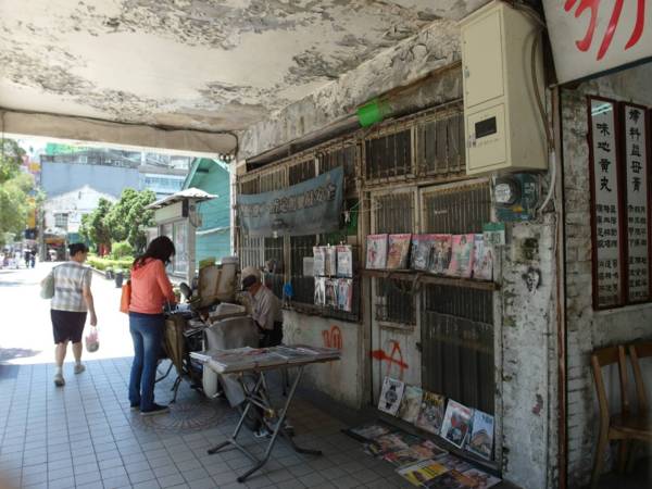 再往旁邊移動會看到ㄧ老舊住宅,每天伯伯都會準時在門口販售報章雜誌,以及相連一家有點歷史的藥房。