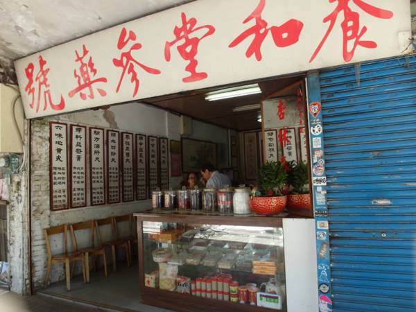 近處拍攝藥行,已經開40年之久