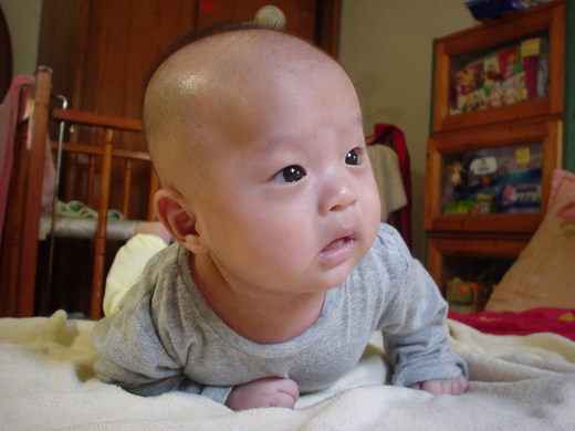 爸今天一早就給QQ宗益來個特訓~俯臥抬頭