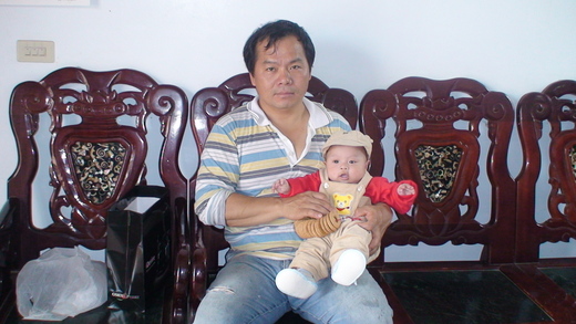 看我穿著外婆送的套裝,脖子再掛著收涎餅,夠帥氣吧!
