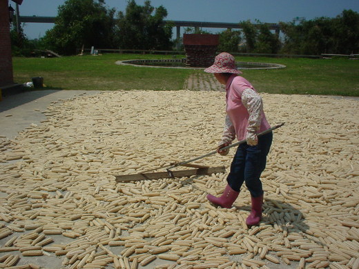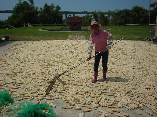 還有阿媽在大太陽底下,努力地翻動著玉米的照片。