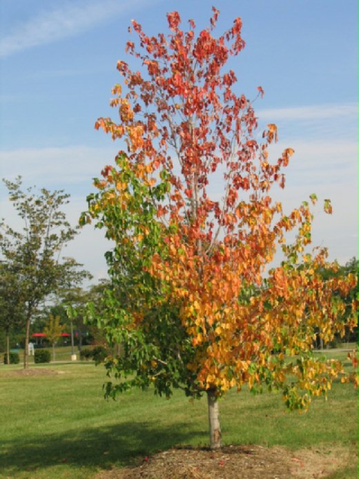 這樹,秋色已暖暖橙黃地燒起來,樹頂一片熾熱的火紅。唯幾許綠意猶眷戀地扯著艷夏驕陽的衣角。