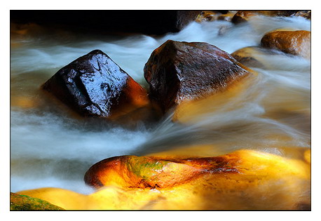 磺溪起源於七星山,經七星山的硫磺地熱匯流而下,因水中富含鐵質,常年以來將水面下的溪石染成特殊的橘黃色,春夏時分,凸出水面的溪石又長出翠綠色的青苔,水面與水面下形成亮麗搶眼的色彩對比,實在是少見且珍貴的自然景觀!其他相片, 歡迎參觀我的相簿, 並感謝你的點閱與推薦 ~