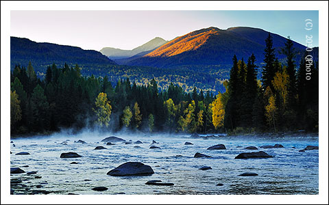 喀納斯位於新疆北部的阿爾泰山中段,地處中國與哈薩克斯坦、俄羅斯、蒙古國接壤的黃金地帶,自然生態景觀和人文景觀始終保持著原始風貌而被譽為“人間淨土”,而喀納斯湖有“世界上最美麗的湖泊”的美譽。喀納斯的風景四季不同、隨氣候變化而氣象萬千,秋天的喀納斯層林盡染、水色碧玉。正如一位聯合國官員所說:“這裡是地球上最後一塊未被開發的地方,她的存在證明人類過去有著無比美好的棲身地”。