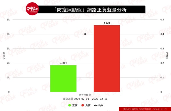 根據QuickseeK情緒聲量分析,網友對於「防疫照顧假」措施多抱持負面看法,認為「防疫照顧假」無助於解決照顧問題。除了無薪放假是抱怨主因外,許多網友也認為延長寒假無濟於事,終究要面臨開學後的大規模群聚風險。也有部分網友認為「防疫照顧假」只是為了逃避兒童口罩大缺貨的問題,治標不治本。