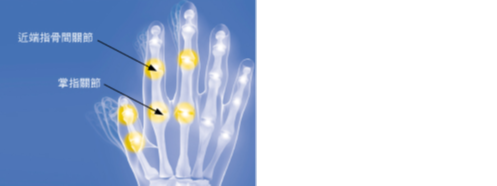 最常表現出症狀的關節是腕關節、近端指骨間關節以及掌指關節,