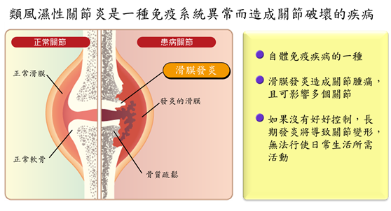 類風濕性關節炎(Rheumatoid Arthritis; RA)為一慢性、全身性自體免疫疾病,
