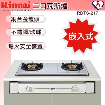 本商品詳細介紹 產品特色 .鋼製爐頭 .集油盤 .熄火安全裝置 .壓電式點火 .不鏽鋼/?瑯天板 .熱效率45%以上 型號:RBTS-217 商品尺寸:710*230*442 ...