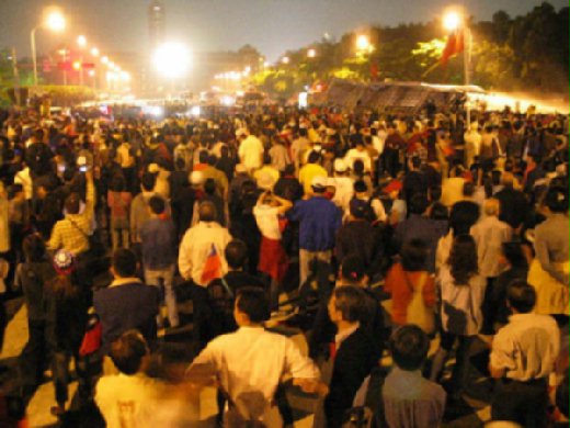 在321到410間,藍營有五十萬以上的愛國群眾在總統府前,但又因為藍營中的