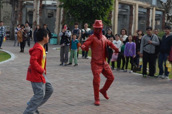 那天假日,走到「駁二藝術特區」, 海旁擠滿了不少人群, 不少年輕父母拖着小孩來拍照散步, 海旁一帶的公仔成為他們取景目標, 情侣則拿着自拍神棍玩自拍,自得其樂。