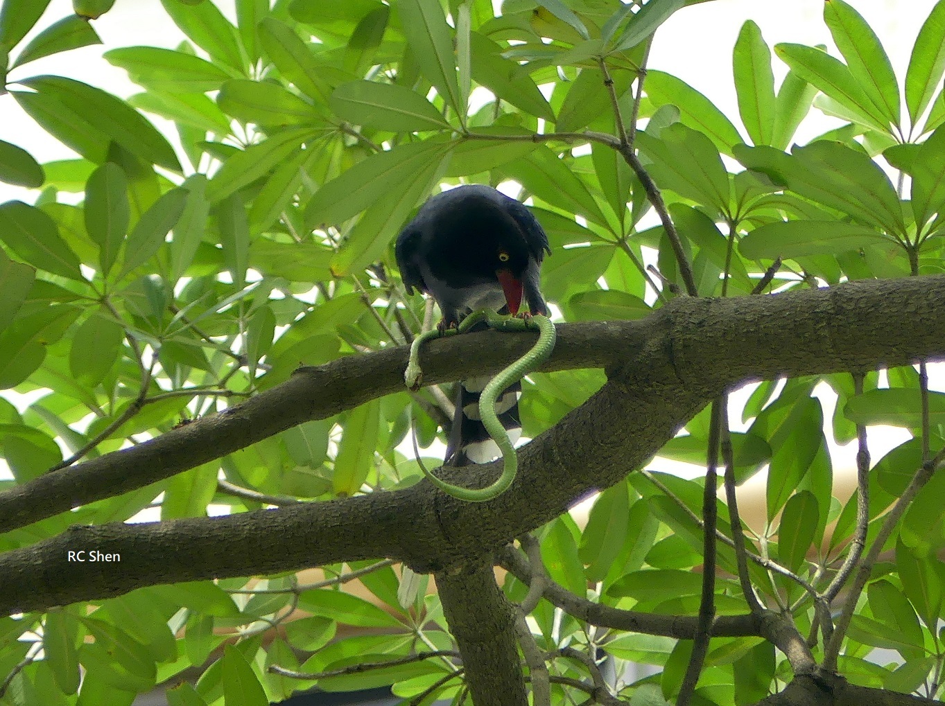 藍鵲的午餐"赤尾青竹絲",F2.8/900mm拍攝
