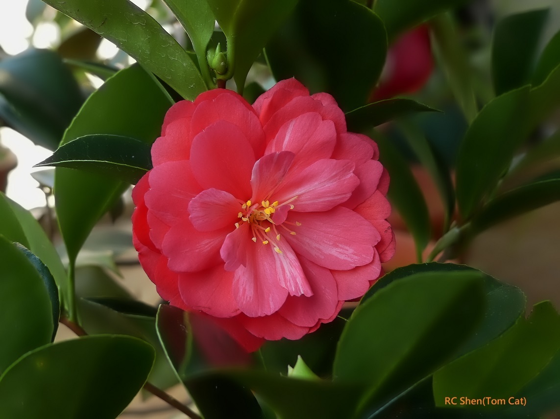 早晨的陽光透過樹葉間隙照到四季茶花上,別有韻味!