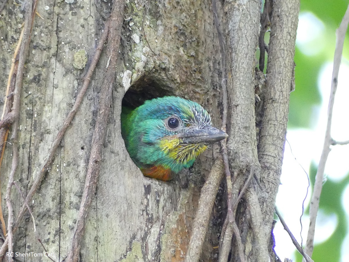 五色鳥寶寶探頭咕嚕嚕叫影片(1050mm手持拍攝)