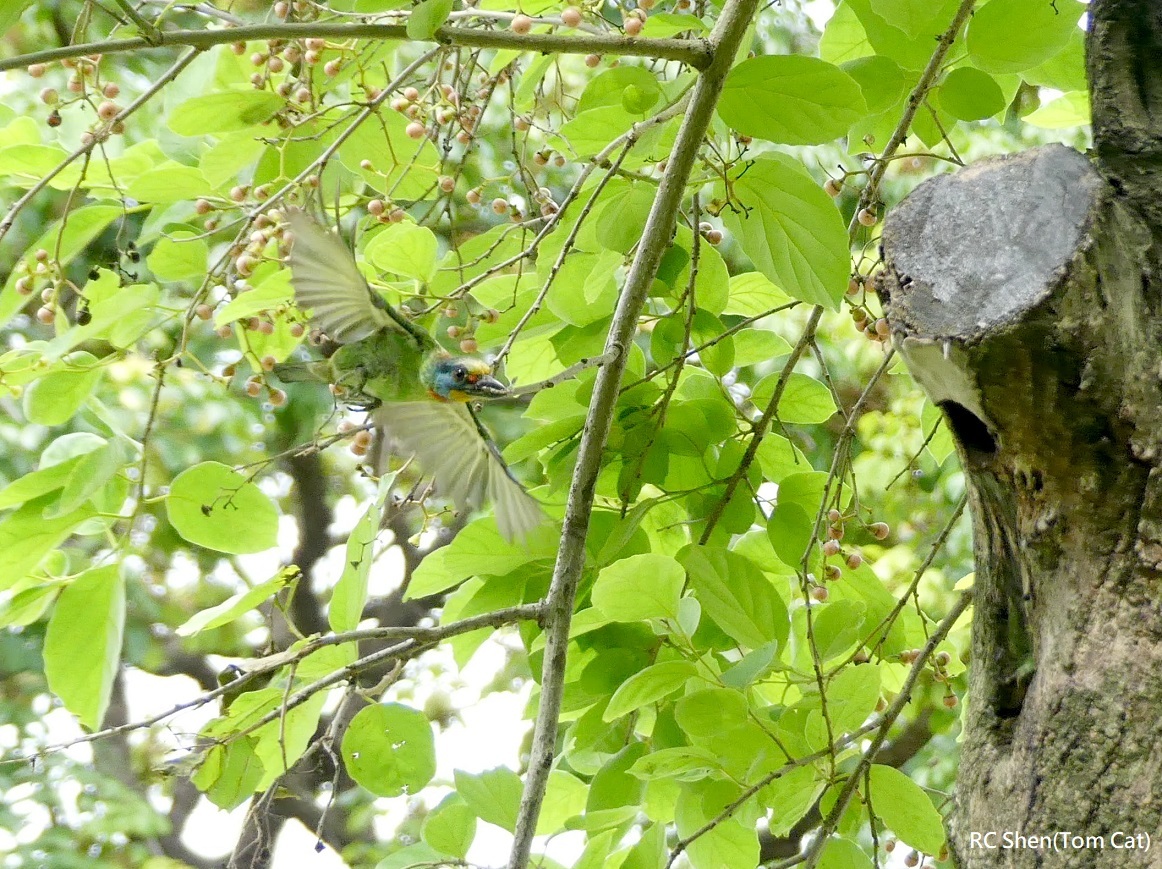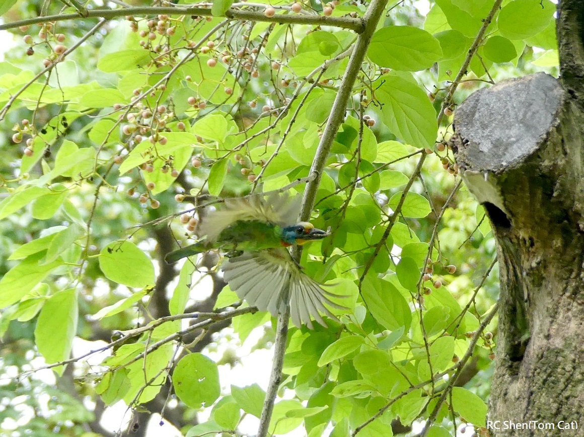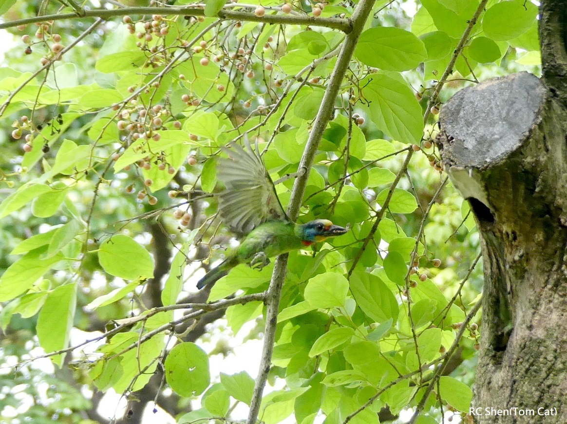 五色鳥餵完寶寶離巢,飛行展翅6連拍!