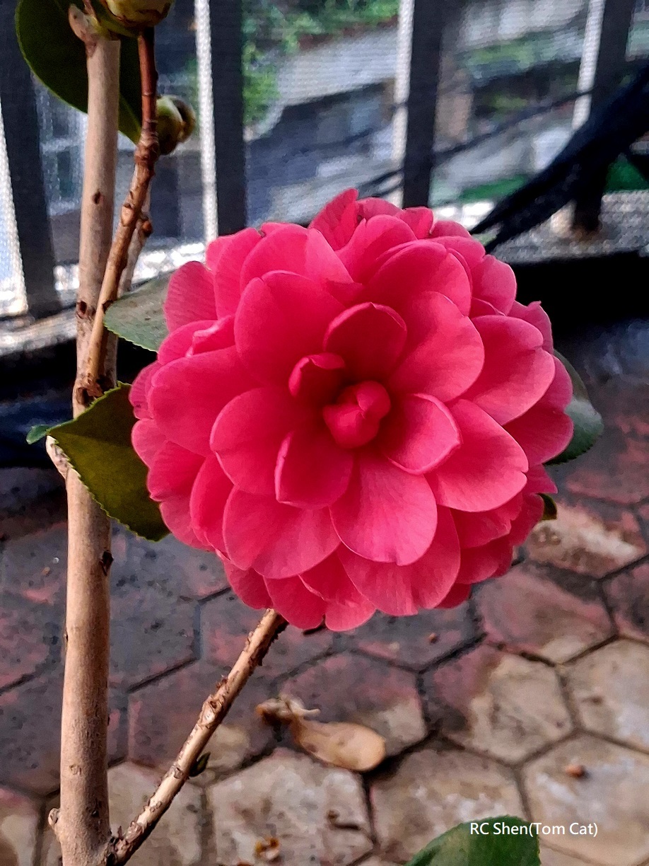 茶花"夢娜玫瑰"今年首開,兩朵今晨同時綻放,艷麗奪目!