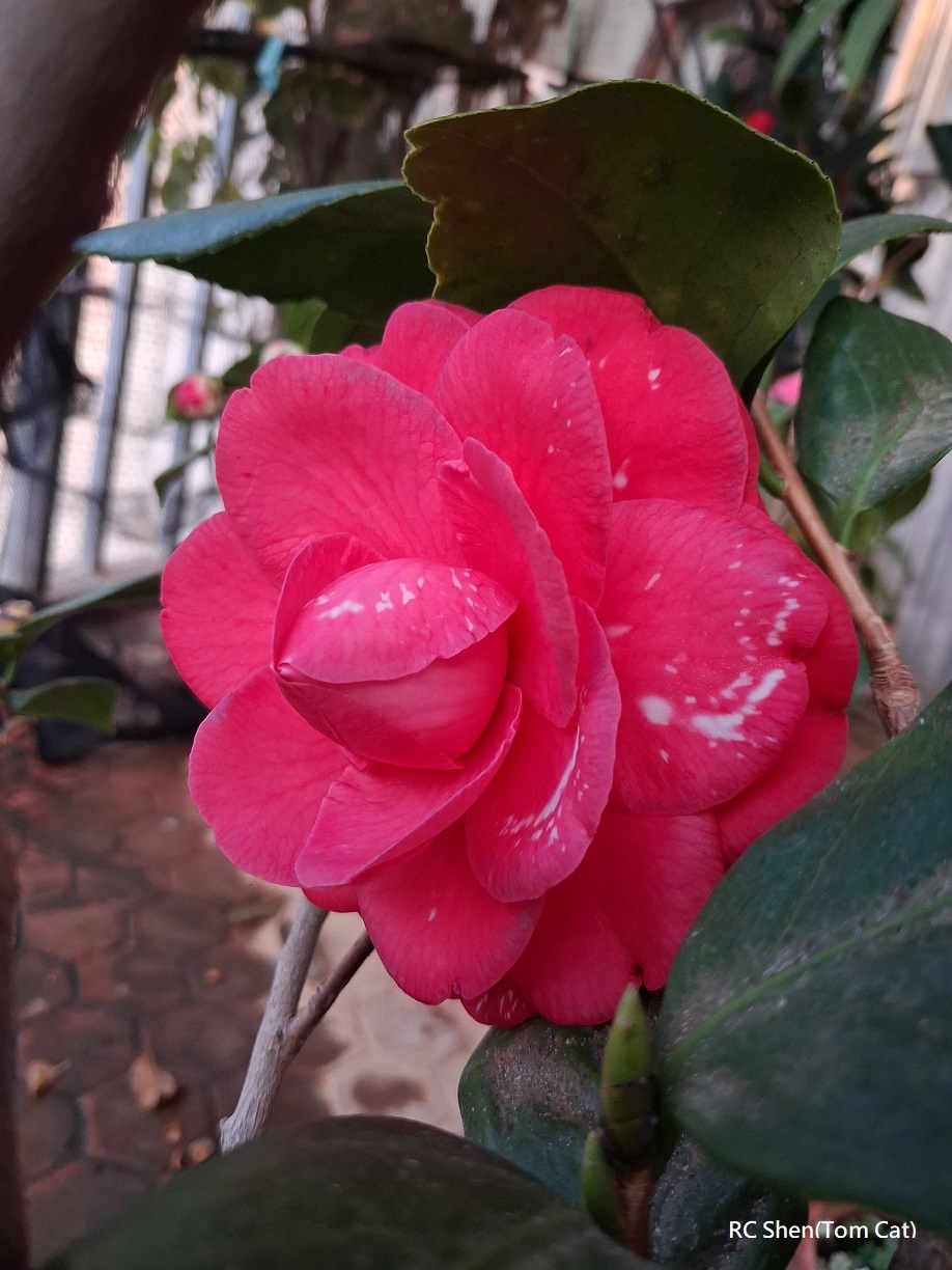 此株四季茶花今年已開50+朵,朵朵花型不同,歲末的今天開出紅色飽滿的花形,預祝大家新年平安健康喜樂!