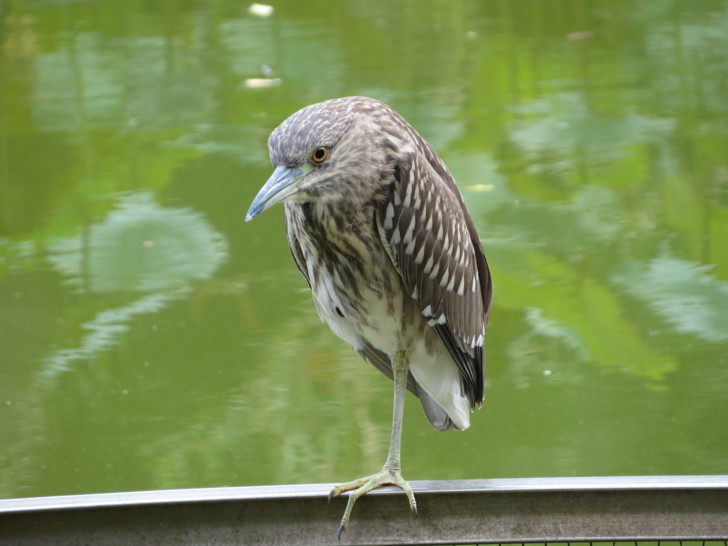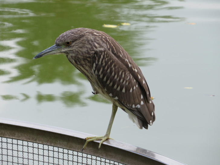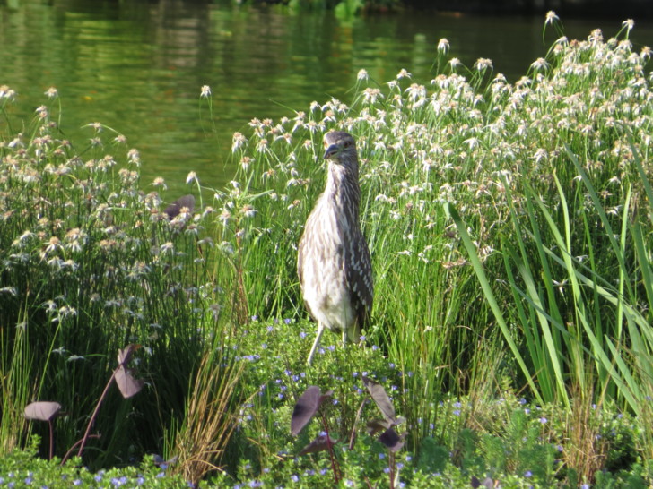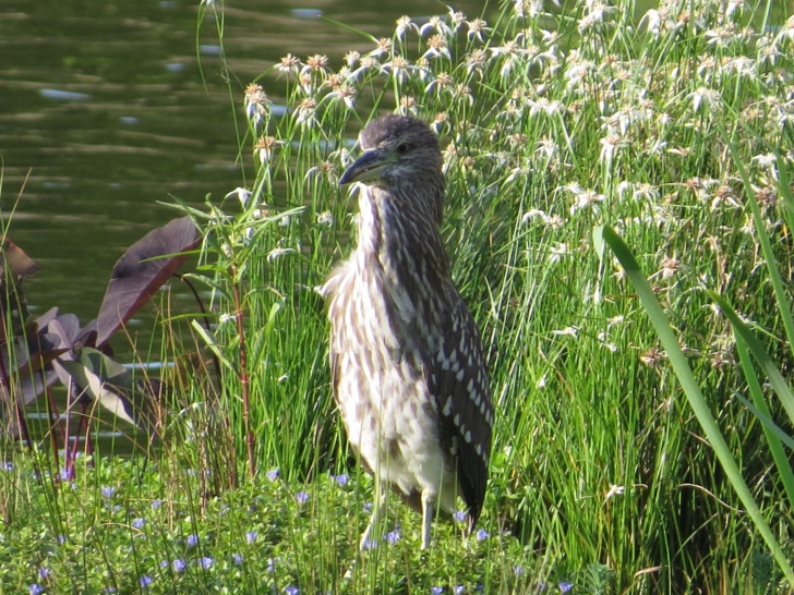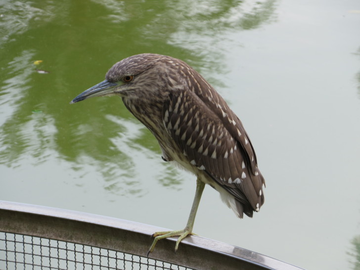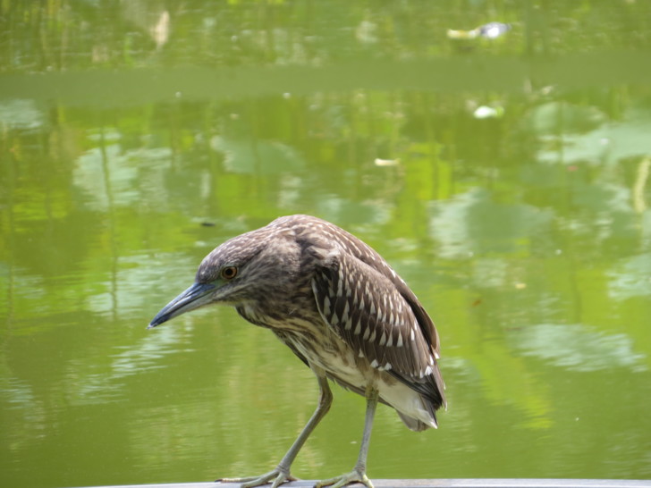 國父紀念館飛來一隻不知名的鳥, 外觀像夜鷺, 可是羽毛不像夜鷺的藍白灰色, 經網路搜尋本以為它是池鷺. 謝謝楓之谷告知, 它是夜鷺亞成鳥, 抱歉前面寫成"池鷺"誤導大家了. 亞成鳥就是成鳥前的階段,相當於人類的青少年,是鳥類換成永久羽之前的階段。