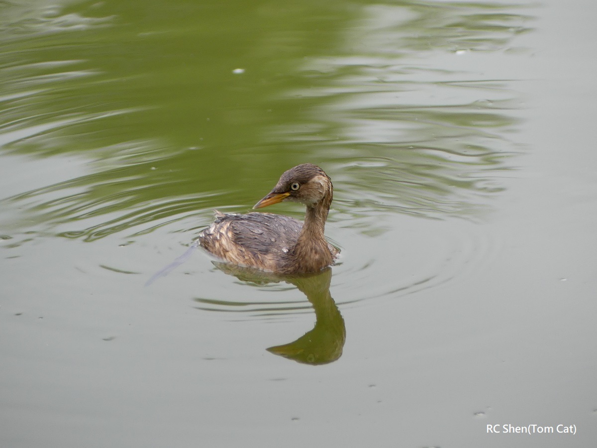睽違五年,小鸊鷈再現國父紀念館翠湖! 小鸊鷈潛水後浮出水面,羽翼濕透! (三張照片)