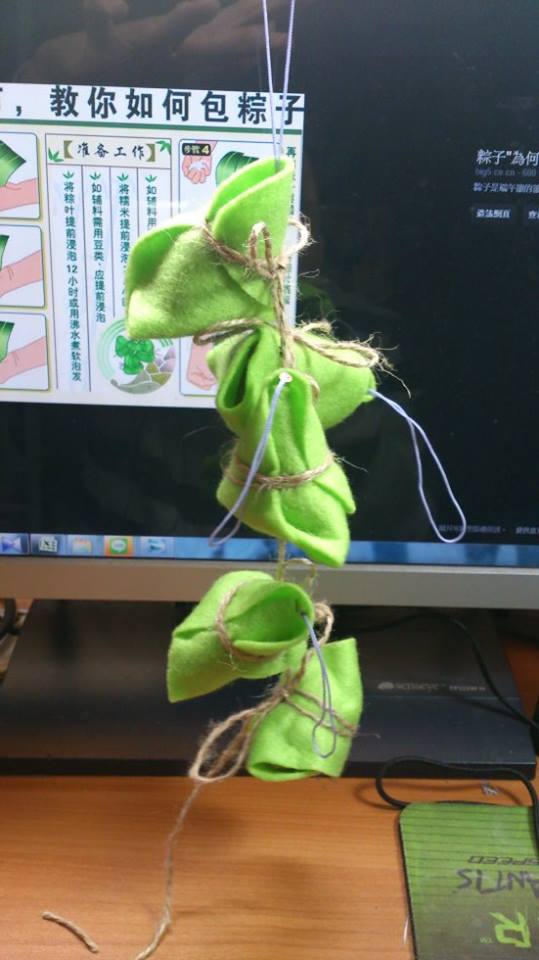 這個是粽子的完成品,掛起來下面的葉子部份也不會脫離(已經縫合)
