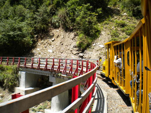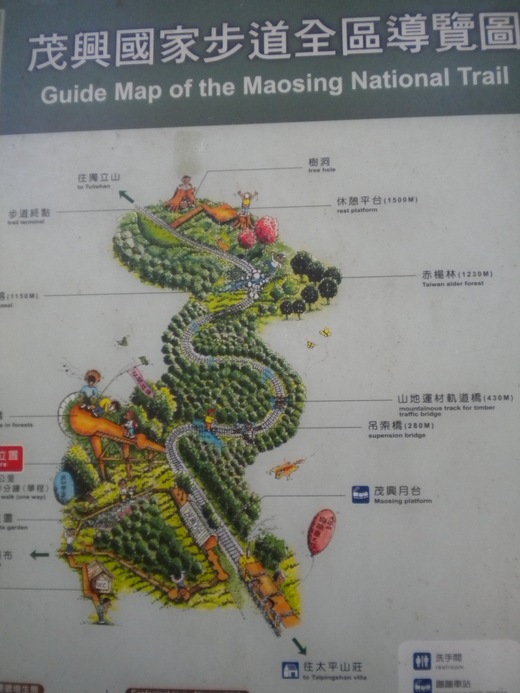 天氣很熱,但是山上的氣溫才20-22度而已,涼涼的風很舒服,搭上了蹦蹦車到了中點站下車,把拔決定來走一條1.5公里的步道(我總是合適的場合穿不合適的鞋,腳穿涼鞋耶~怎麼走呢??)
