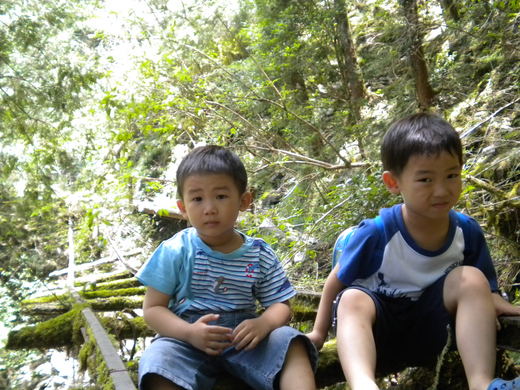 兒子二人很高興,因為這一路都是順著鐵道而行,但中途部分鐵道因之前的坍方,路都掏空了。路不平,一上一下反而像爬山。這來回共有3公里,我們花了1.5小時走完全程,弟弟完全自己來(他才2.8y),沒有賴皮要抱抱,延路的風景真的很美,在山上吸取了森林芬多精,舒服極了。