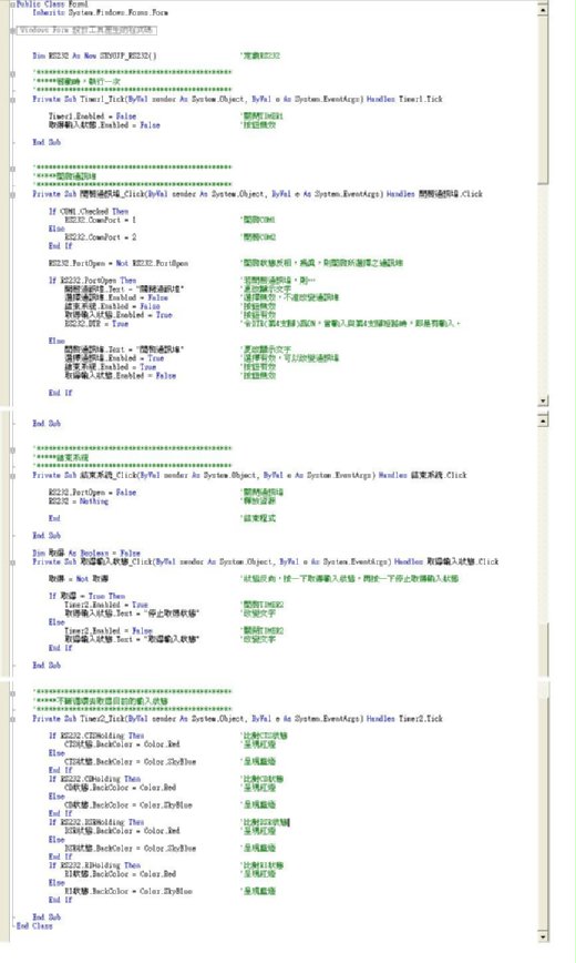 並利用VB.NET的程式來接收由RS232所產生的輸入狀態…