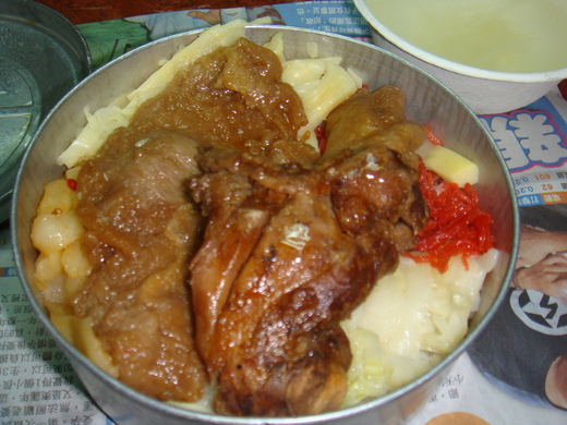 我們有外帶一個"機關手"便當回家,是桂花滷雞腿便當。雞腿比"奮起湖大飯店"的稍微大了一些,這是給豬媽吃的,我沒吃到,不過豬媽也覺得很普通。