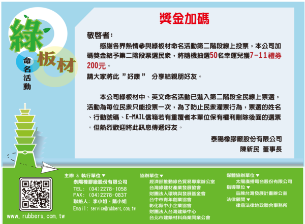 泰陽橡膠廠 綠板材中英文命名活動開跑!