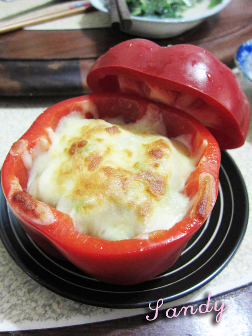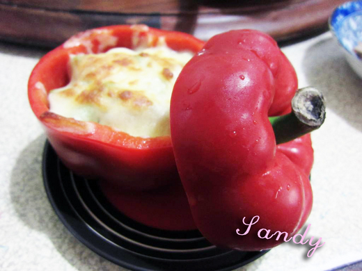 前陣子在學妹的FB上面看到這道料理,不僅簡單,連長相都很美,所以偷偷問她一些訣竅,就自己來做了...我覺得這是一道很好吃又方便的配菜。因為我吃的時候沒有把甜椒吃掉,就把料挖一挖,最後再拿去炒別的菜(感覺有點不衛生,但是我不知道怎麼啃那顆甜椒)。