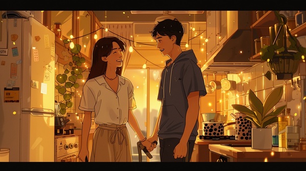 某個傍晚,佑倫把公仔收盒、地板擦亮、回收桶排列得像展覽。他煮了三菜一湯,卡片寫:「謝謝妳教我日常。」語晴坐下,看了一圈整潔,眼神柔卻不急於被打動。談話從「好吃」轉進「太晚」,湯鍋忽然滾成岩漿,他手忙腳亂,她笑著救火。