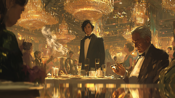 當夜,雨聲敲打著窗戶。他在書房翻閱卷宗,卻無法專注。燈光下的倒影裡,他看見自己的臉輪廓逐漸模糊,仿佛蒙上一層陰影。