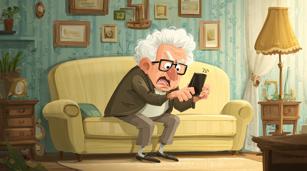 2.王老先生遍尋不到手機,只好癱坐在沙發上,神情非常沮喪。
