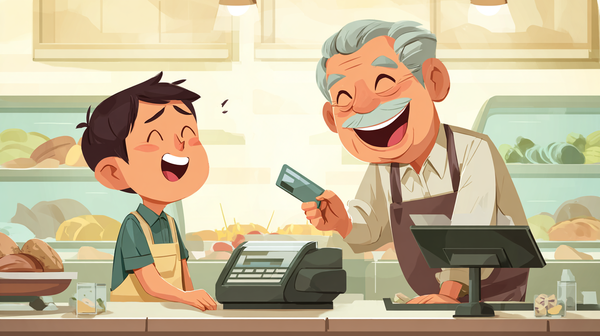 3.王老先生刷了一下他的卡,年輕人在旁邊看。"嗶",哈哈,機器有反應了。王老先生叫道