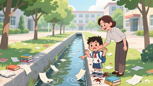1.終於又開學了,阿明第一天開學太興奮,走路不小心滑倒,差點又掉進溝裡了