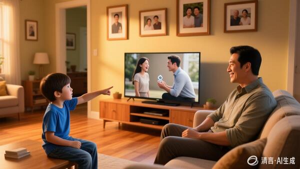 1.兒子和爸爸正在看電視,劇中男主角突然跪下向女主角求婚。