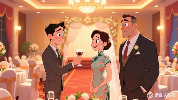 2.在婚宴上,新郎見到陌生的阿明前來敬酒,好奇地問:這位先生您是?