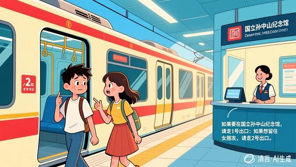 正確的出口 1.一對情侶坐捷運去國父紀念館,下車後就因為哪個出口比較近而爭執起來…… 2.男生說:1號出口,女生堅持:2號出口。 3.男女雙方互不相讓,鬧的不可開交。無奈之下男生只能求助於服務台的站務...