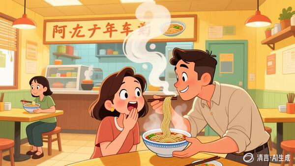 如果是我老公 1.阿英某晚加班後,獨自在麵館吃麵,看到一個男的,正在幫女生的湯麵吹熱氣 2.阿英看著這場景非常羨慕,心裏在想:如果我老公也有這麼溫柔那就太好了! 3.想著想著,阿英突然覺得這男人很眼熟...