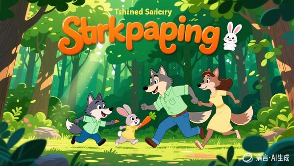 吃素的狼 1.有一隻狼寶寶一生下來就不吃肉只吃素,狼爸爸和狼媽媽很擔心。 2.但有一天,牠們竟然看到狼寶寶追著一隻兔子跑。 3.狼爸爸和狼媽媽感到十分欣慰,手舞足蹈。 4.沒想到狼寶寶抓到兔子之後對兔...